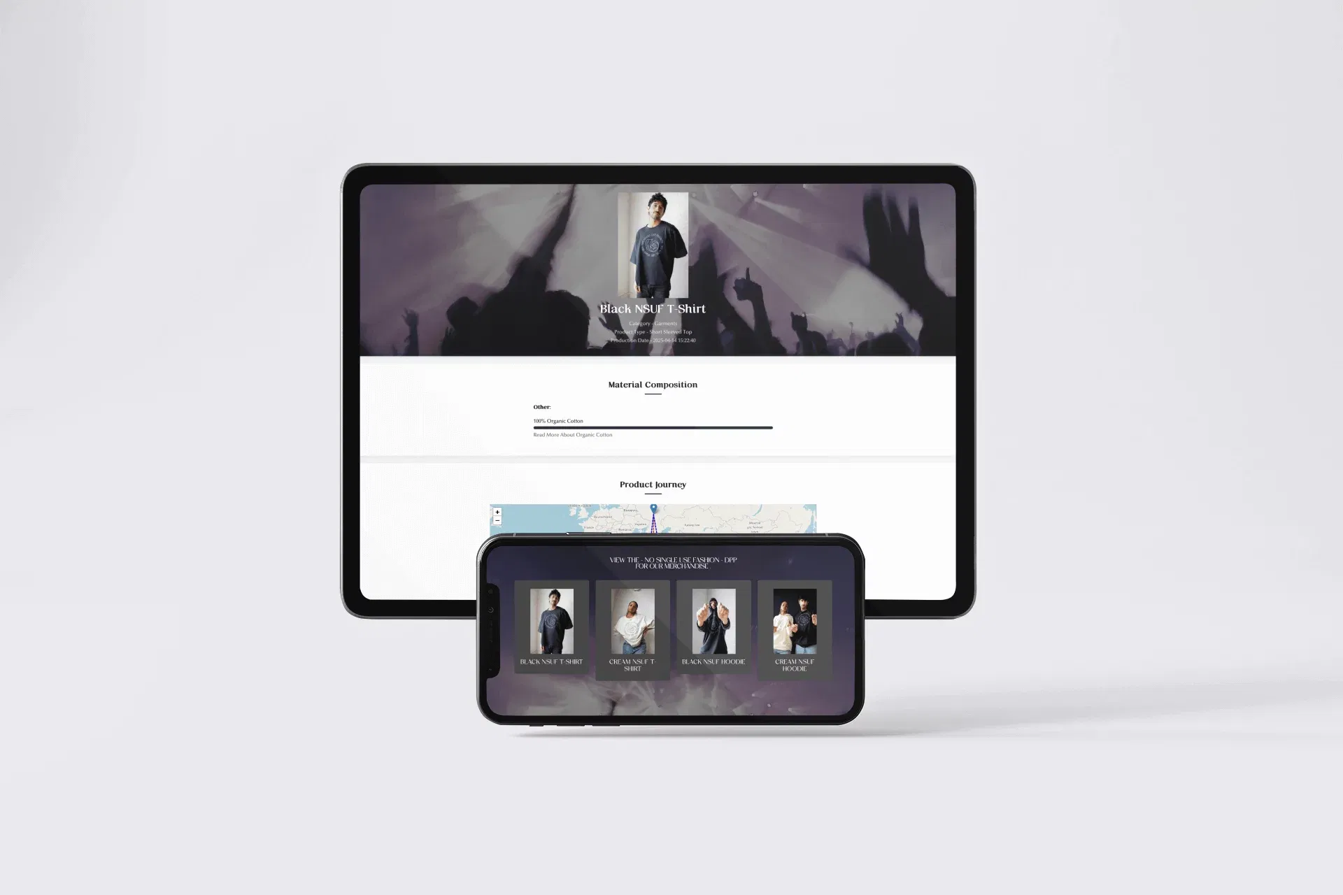Complete information on fibre origins, certifications, production methods, and full lifecycle impact is available directly in each item’s Digital Product Passport (DPP), accessible via QR code on campaign merchandise.